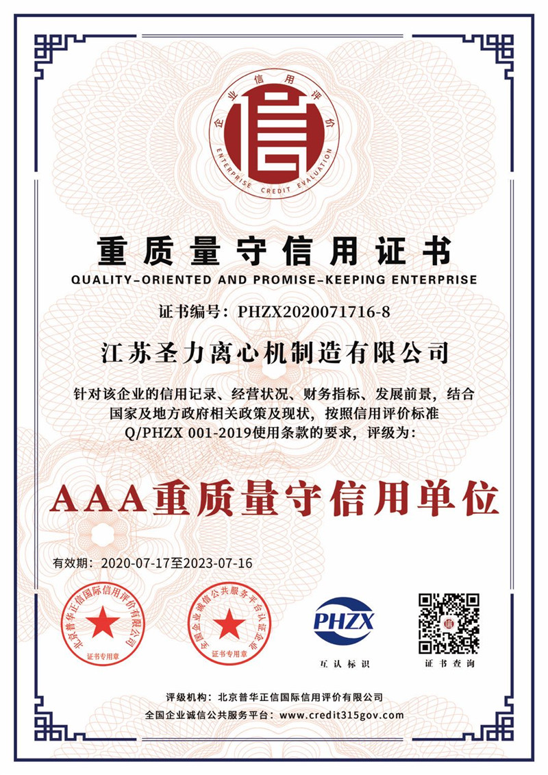 江蘇圣力離心機制造有限公司是國內分離機械行業中主要的離心機生產企業,對離心機的研究、設計、制造有多年的歷史,擁有齊全的設備、完善的檢測手段。公司已通過IS09000國際質量體系認證、ISO14001環(huán)境管理體系認證、ISO45001:2018職業健康安全管理體系認證和CE認證,是江蘇省高新技術企業,曾榮獲國家和地方多項榮譽稱號。